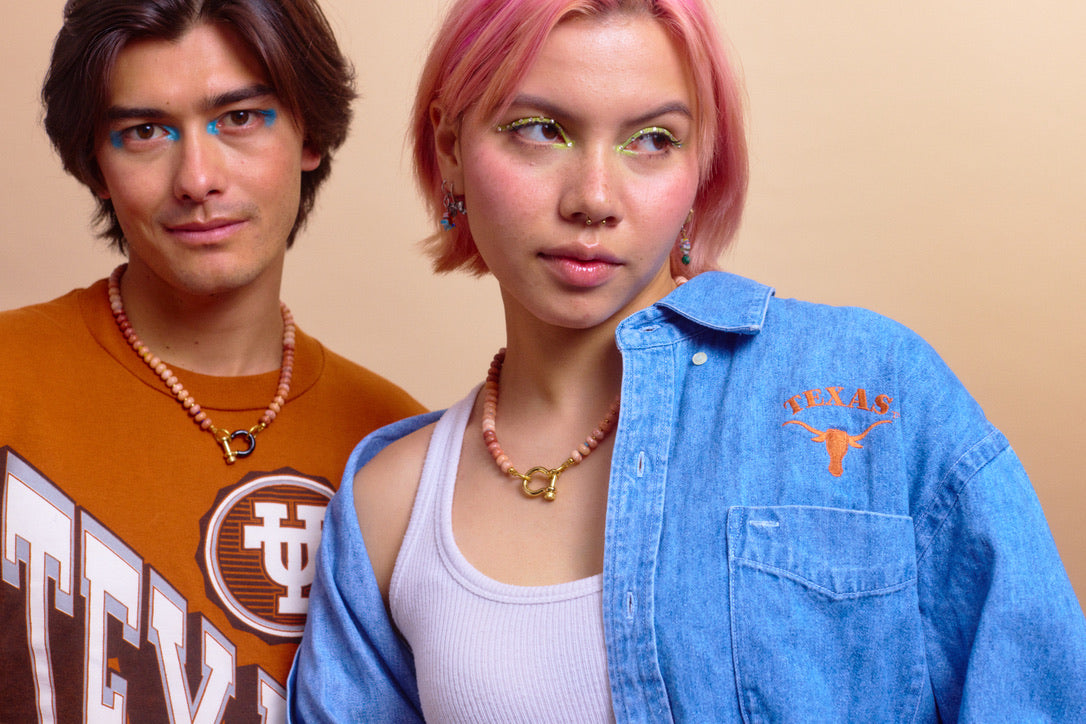 17 inch quartz necklace with 14 karat gold plated hardware and carabiner University of Texas