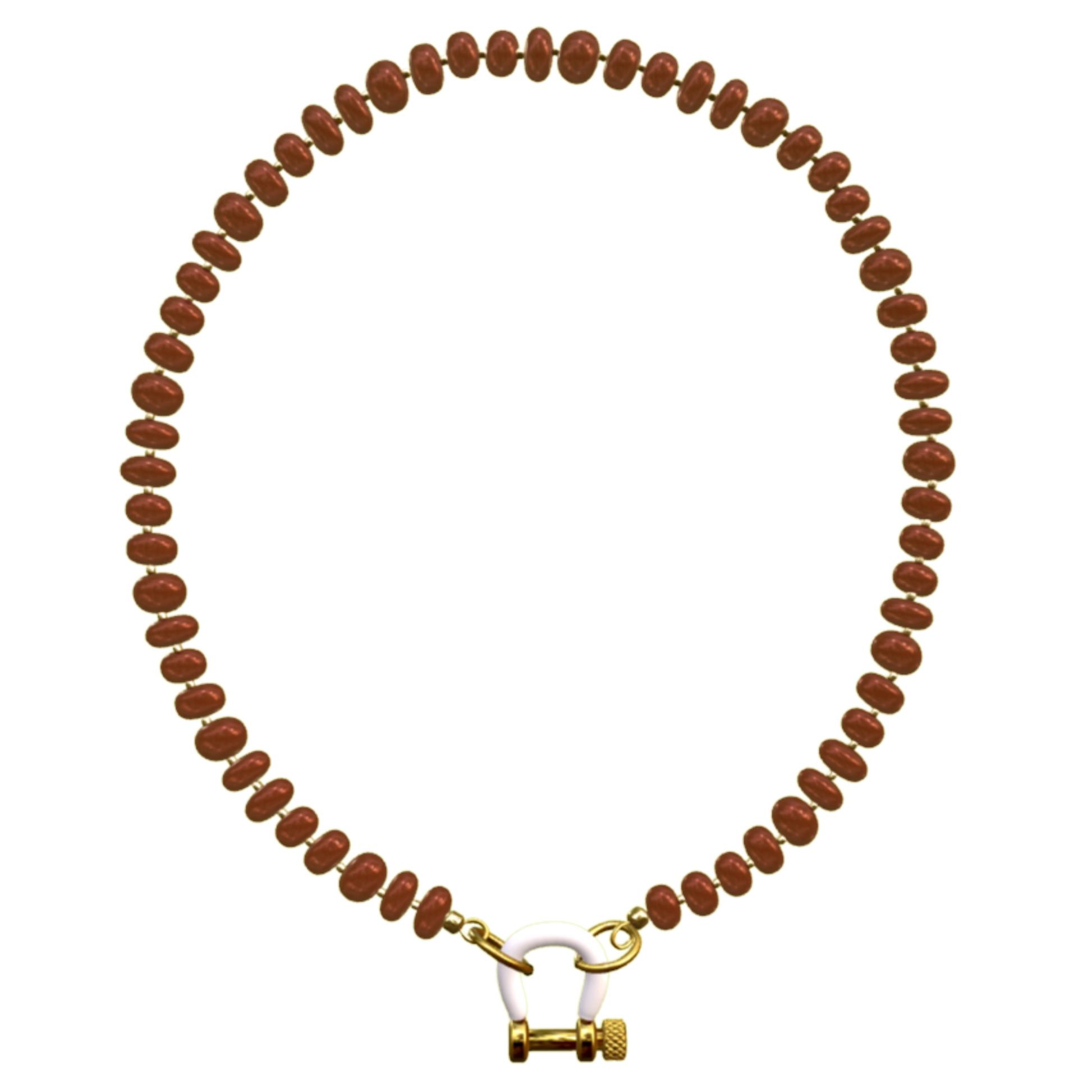 17 inch garnet necklace with 14 karat gold plated hardware and enamel carabiner - Mississippi State University