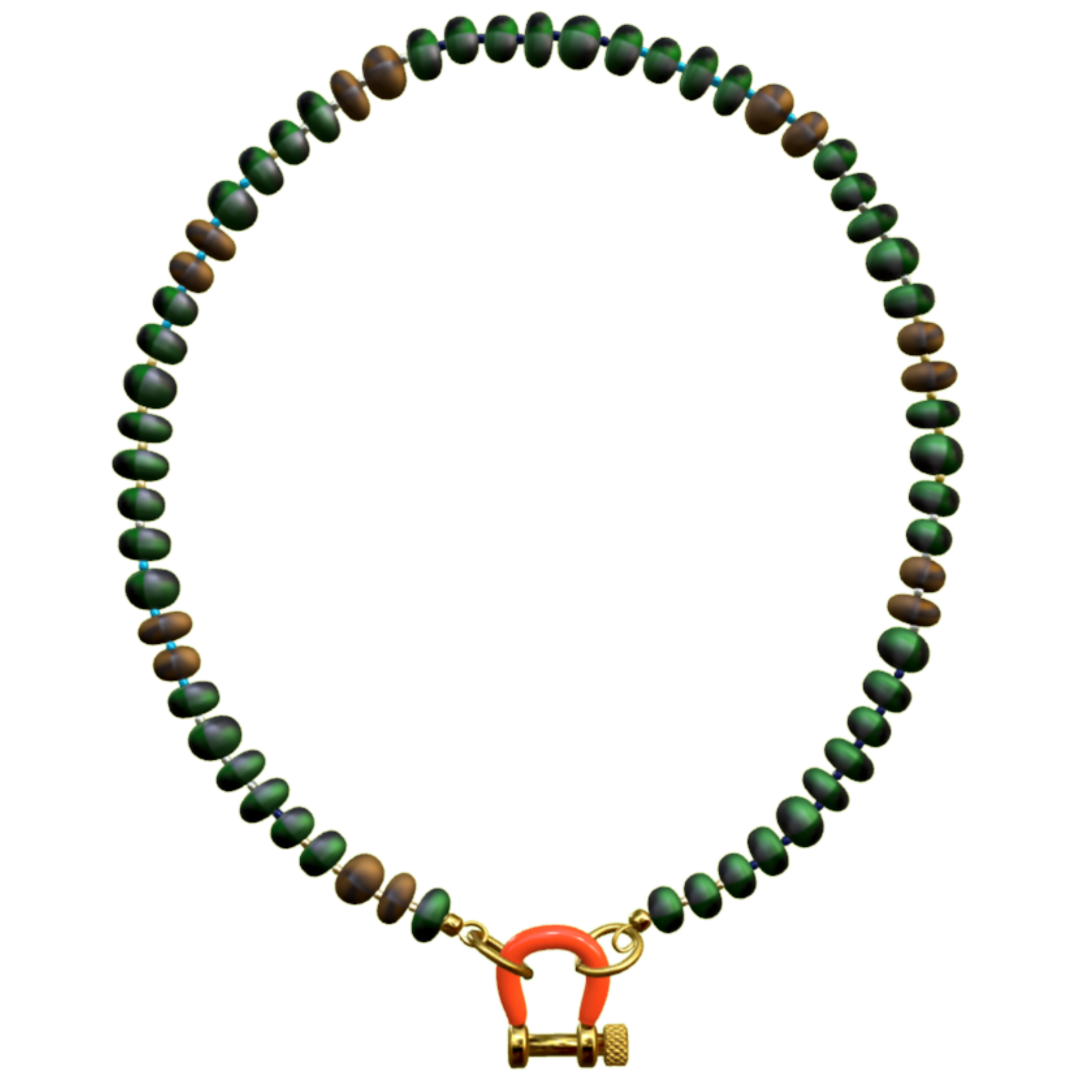 17 inch malachite and tiger eye necklace with 14 karat gold plated hardware and enamel carabiner - University of Miami