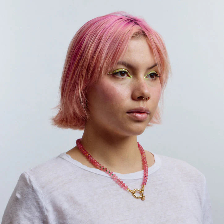 17 inch apple quartz necklace with 14 karat gold plated hardware and carabiner - ASU, Arizona State University