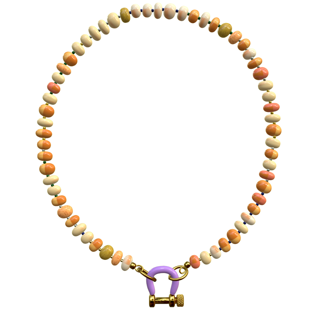 17 inch opal necklace with 14 karat gold plated hardware and enamel carabiner Clemson