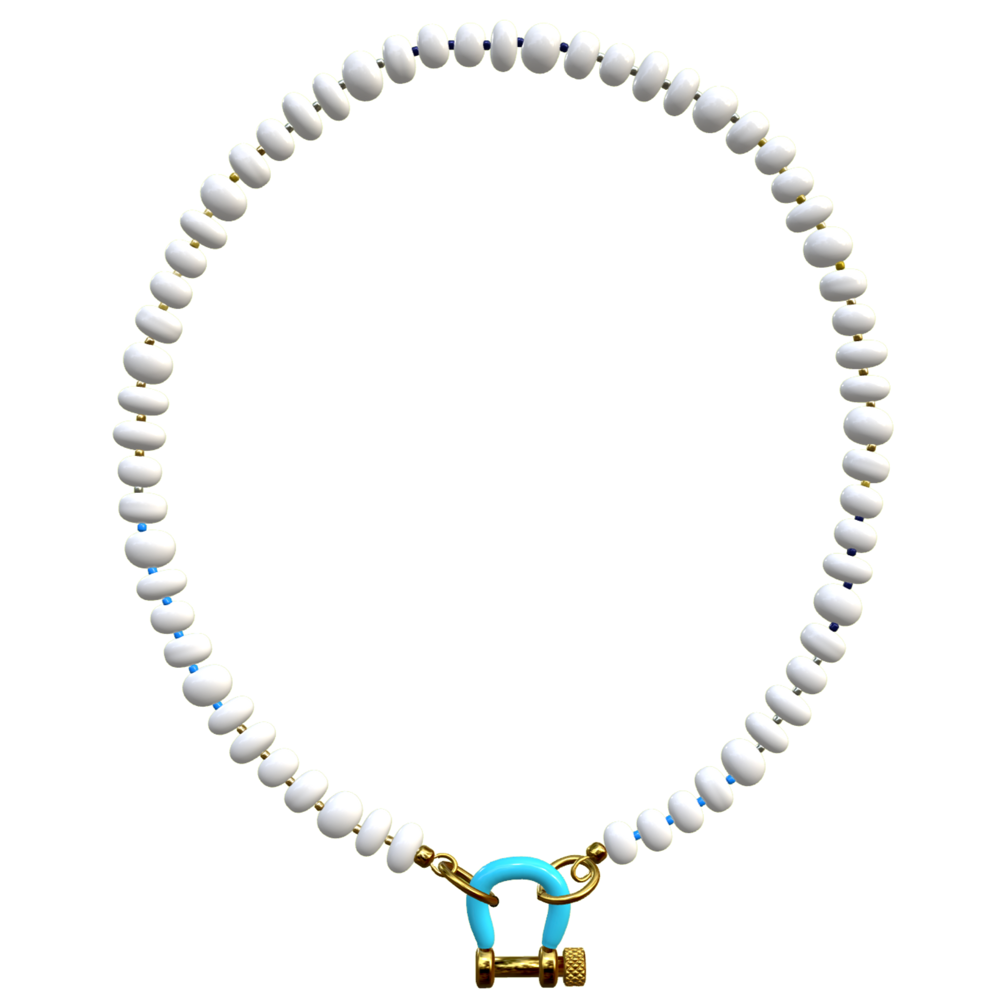 17 inch opal necklace with 14 karat gold plated hardware and enamel carabiner - UNC, University of North Carolina